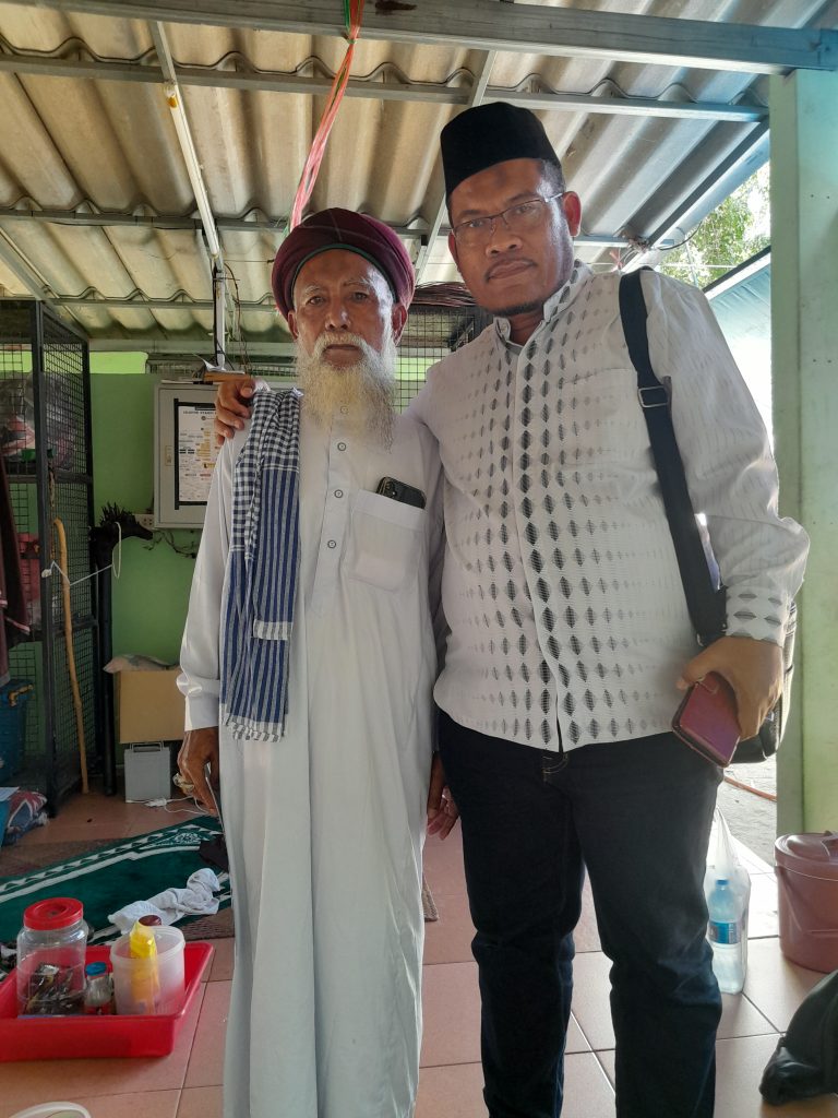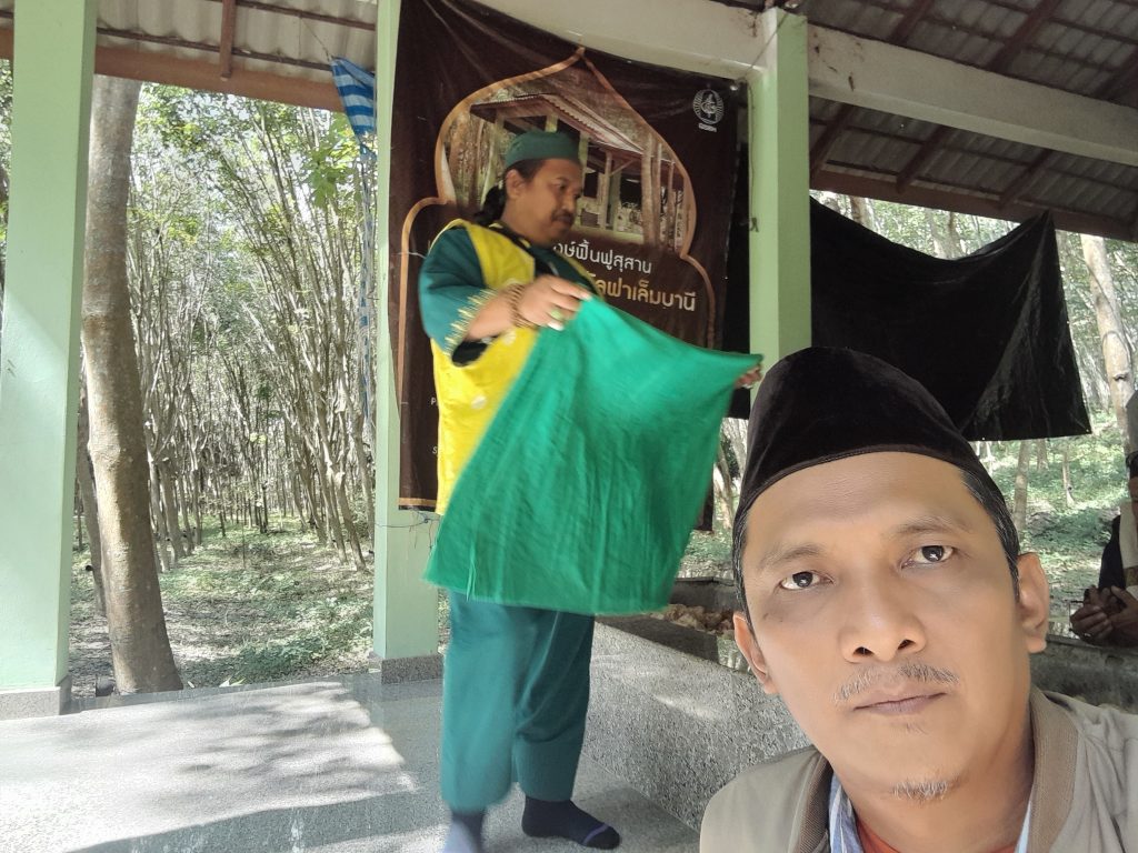 Sekitar pukul sembilan pagi waktu Thailand, kami tiba di jalan sempit yang membawa kami masuk ke hutan getah milik warga setempat. Jalanan itu hanya selebar empat meter, sebagian berkerikil, sebagian rusak. Namun suasana sunyi yang menyelimuti, ditambah semangat ziarah, menjadikan setiap langkah kami ringan dan khidmat. Di antara rimbun pohon getah itulah, berdiri sosok tua dengan tongkat di tangan—penjaga makam yang dikenal sebagai Pak Cu . Rambut dan janggutnya memutih, usianya mendekati tujuh puluh, namun suaranya masih kokoh, berlogat Melayu Pattani yang kental. Ia menyambut kami dengan penuh adab, dan mempersilakan kami memasuki kawasan makam.