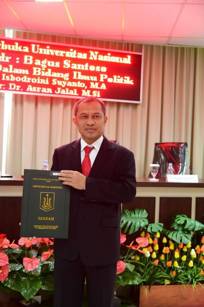 Bagus Santoso pada pergerakanya di kancah lokal dikenal sebagai sosok inspiratif dengan perpaduan tiga kekuatan jurnalis, politisi dan akademisi. Tugas disertasi dengan judul Strategi Politik Caleg Pada Pemilu Legislatif merupakan karya akademik yang tidak jauh dari profesi yang diembannya sampai sekarang. (Rls/Advetorial)
