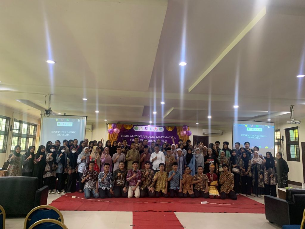 “Dan tahniah kami ucapkan kepada bapak Dr HM Rizal Akbar, S.Si, M.Phil yang terpilih sebagai Ketua Umum IKA Matematika FMIPA UNRI dan bapak Zetra Hainul Putra, S.Si, M.Sc, Ph.D yang terpilih sebagai ketua harian IKA Matematika FMIPA UN semoga terus bersinergi dengan kampus untuk kerja-kerja lebih besar dimasa akan datang,” ungkapnaya. Kegiatan pertemuan IKA Matematika FMIPA UNRI sebelum ditutup dilakukan sesi foto bersama sebagai bentuk memperkuat jalinan silaturahmi alumni, dosen dan mahasiswa. ***