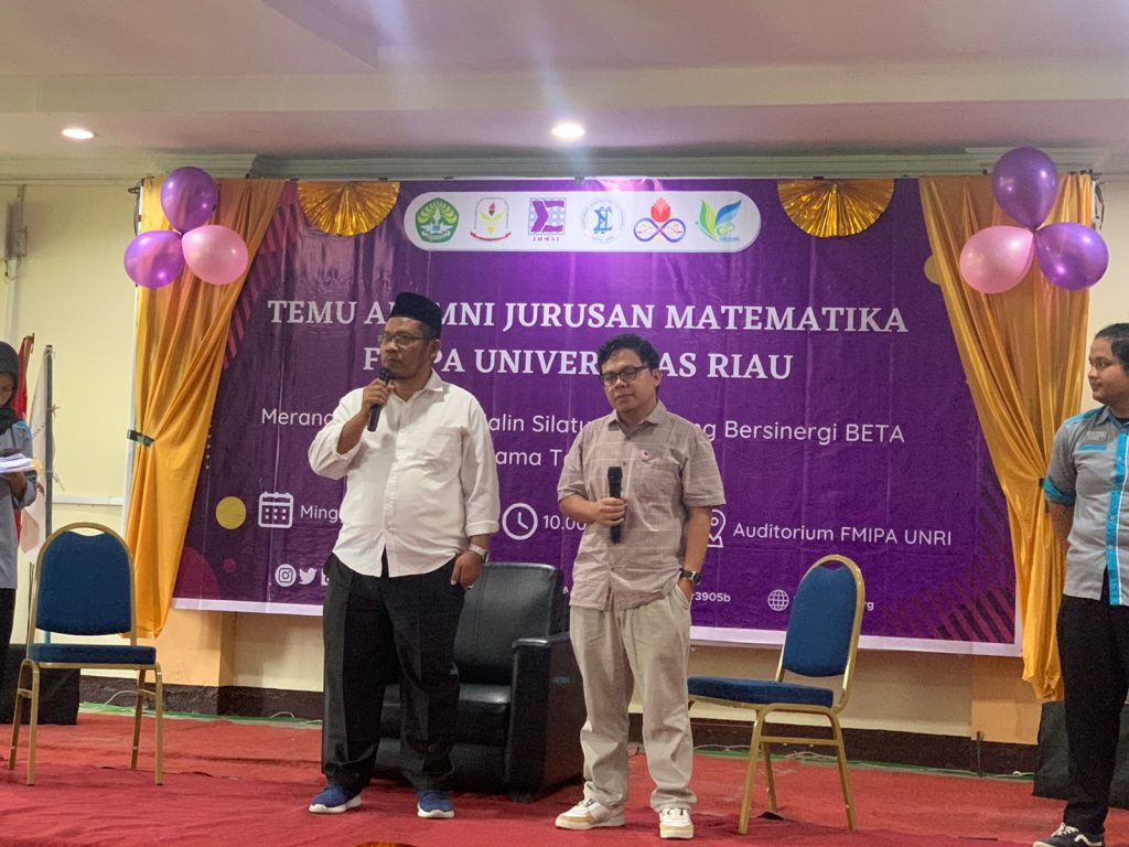 Hadir dalam pertemuan alumni jurusan matematika FMIPA UNRI dibuka Dekan FMIPA UNRI, Dr Syamsudhuha, M.Sc, dosen, alumni dan Ketua Umum IKA Jurusan Matematika FMIPA UNRI juga mantan Wakil Walikota Pekanbaru, Ayat Cahyadi S.Si.
