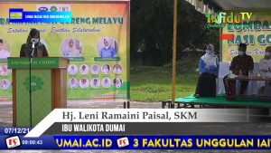 BUALNEWS.COM -- Istri Walikota Dumai, Hj Leni Ramaini, S.Km yang juga sebagai Ketua PKK Kota Dumai langsung membuka kegiatan lomba masak nasi goreng melayu yang digelar Dewan Pimpinan Cabang (DPC) Perkumpulan Penyelenggara Jasa Boga Indonesia (PPJI) Kota Dumai, Kadin dan Institut Agama Islam Tafaquh Fiddin Dumai ( IAITF) Dumai.