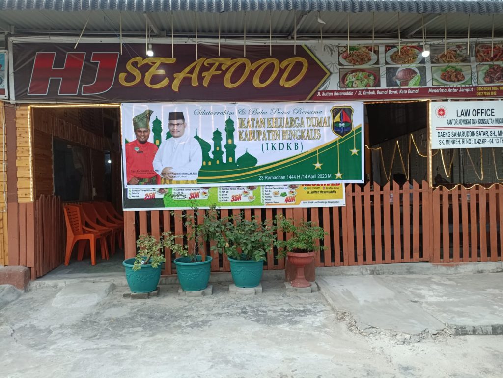 BUALNEWS.COM — Ikatan Keluarga Dumai Kabupaten Bengkalis (IKDKB) mengelar buka puasa bersama dengan jajaran dewan penasehat, pengurus dan warga, Jumat (14/4 2023) di Hj Resto Cafe Jalan Hasanuddin/Ombak, Dumai Barat.