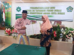 BUALNEWS.COM –– Institut Agama Islam Agama Tafaqquh Fiddin (IAITF) Dumai melakukan penandatanganan MoU dengan Kementerian Agama Kota Dumai, Jumat (28/2 2022) di Aula Pertemuan Lantai II IAITF Dumai.