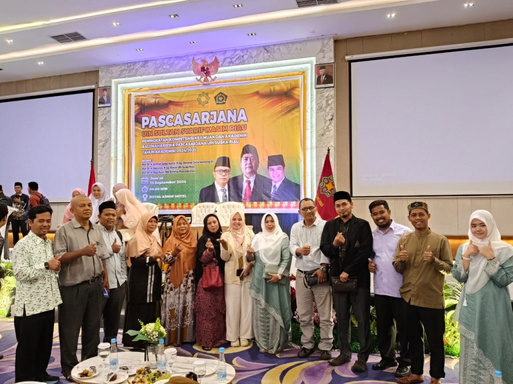 Kegiatan perkuliahan umum Pascasarjana Universitas Islam Negeri (UIN) Sultan Syarif Kasim Riau bertemakan peningkatan kompetensi keilmuan dan akademik bagi mahasiswa pascasarjana UIN Suska Riau Tahun Akademik 2024/2025 diawali dengan menyanyikan lagu Indonesia Raya, Hymne UIN Suska Riau, Mars UIN Suska Riau, dilanjutkan dengan membaca ayat suci Alquran oleh kori internasional juga dosen UIN Suska Riau serta doa dipimpin Dr Alwizar M.Ag. Kemudian ditutup penyerahan cendramata kenang-kenangan dari Rektor ke Direktur Diktis Kemenang RI, Prof Dr H Ahmad Zainul Hamdi M.Ag dan foto bersama dengan seluruh peserta kuliah umum. ***