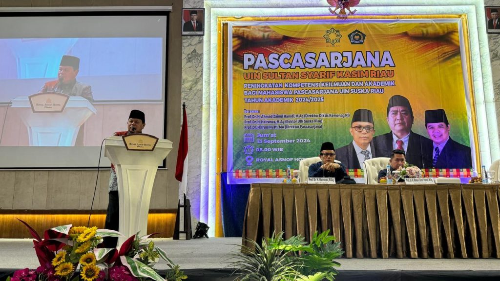 BUALNEWS.COM — Pascasarjana Universitas Islam Negeri (UIN) Sultan Syarif Kasim Riau mengelar kuliah umum bertemakan peningkatan kompetensi keilmuan dan akademik bagi mahasiswa pascasarjana UIN Suska Riau Tahun Akademik 2024/2025 dihadiri Direktur Diktis Kemenang RI, Prof Dr H Ahmad Zainul Hamdi M.Ag.