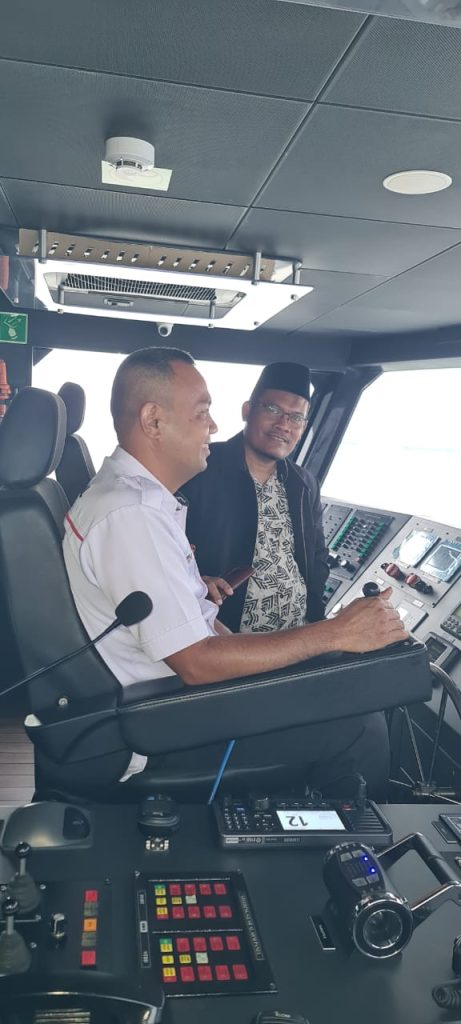 Pukul 07.00 WIB, saya, Dawami S.Sos, M.I.Kom termasuk orang ketiga datang ke pelabuhan. Disini, sudah ada Kesi dan Mei. Kemudian baru diikuti kedatangan yang lainnya. Ada Dr HM Rizal Akbar M.Phil, Umi Tari, pak Rektor Dr H Rozai Akbar MH, Dr Deni Suryanto M.Pdi dan ditutup Muhammad Farid Firdaus. Walaupun bagiKU, ini bukan kunjungan keluar negeri pertama ke Melaka. Tapi bagi sebagian mahasiswaKU ini adalah kunjungan pertama mereka. Dah terbayang, bagaimana rasa suka citanya dengan segala tanda tanya dipikiran mereka. Semoga kunjungan ini, memberikan bekas buat diceritakan dan dikenang salam kuliah di Institut Agama Islam Tafaqquh Fiddin (IAITF) Dumai.
