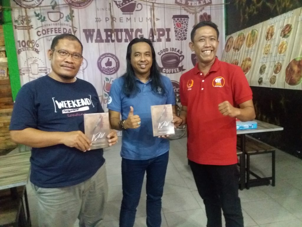 Menyambut kehadiran Poey Stings, pemilik Warung Api mempergunakan kesempatan tersebut denģan menyerahkan bukunya.
