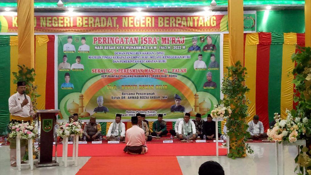 BUALNEWS.COM — Institut Agama Islam Tafaqquh Fiddin ( IAITF) Dumai mendapat kehormatan dari Majelis Tinggi Kerapatan Adat Melayu Empat Suku Kenegerian Kubu untuk mengisi ceramah peringatan Isra Mikraj dan menyambut bulan suci Ramadan, MoU kerjasama dan peresmian Masjid Al Falaq, Rantau Panjang Kanan, Kecamatan Kubu, Kabupaten Rokan Hilir, Rabu (23/3/2022).